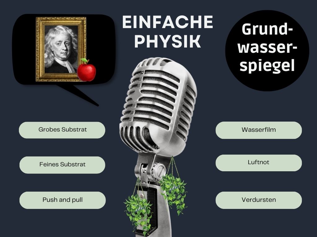 Aber keine Sorge, die Sache mit dem Grundwasserspiegel hängt von zwei anderen Faktoren ab, die du beeinflussen kannst.
